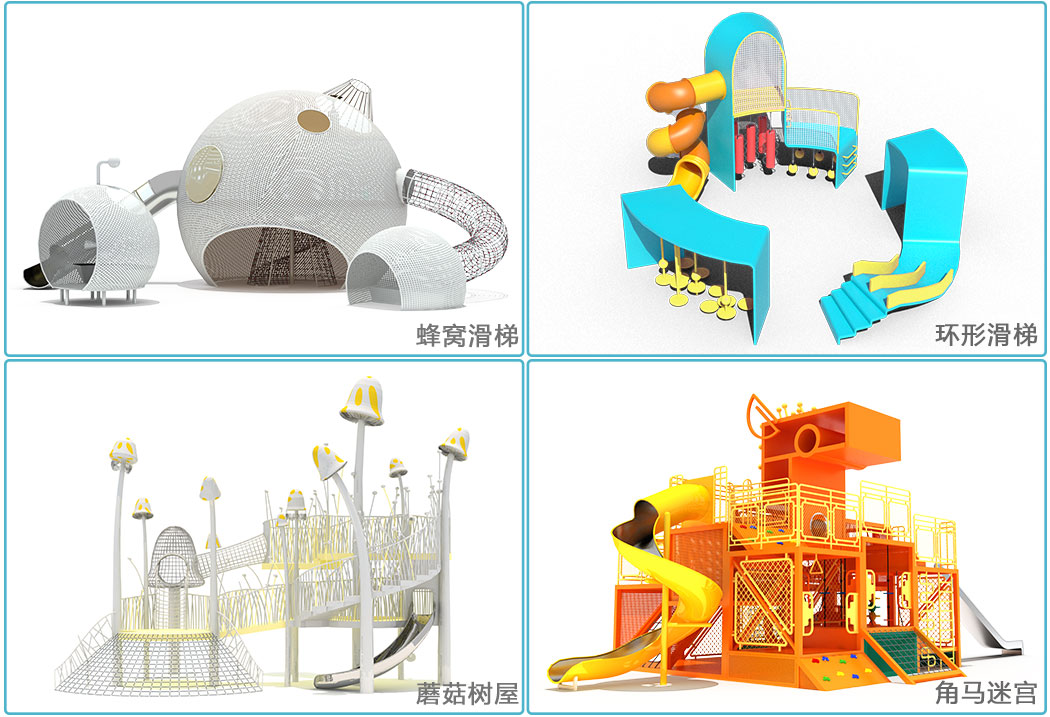 二、功能特點:本游樂設施滿足幼兒園基本動作訓練走、跑、跳、平衡、投、攀、爬、鉆、滑及玩撒內容,有不銹鋼滑梯、懸空鉆洞、S型滑梯、玩撒平臺、攀爬繩網等等功能模塊