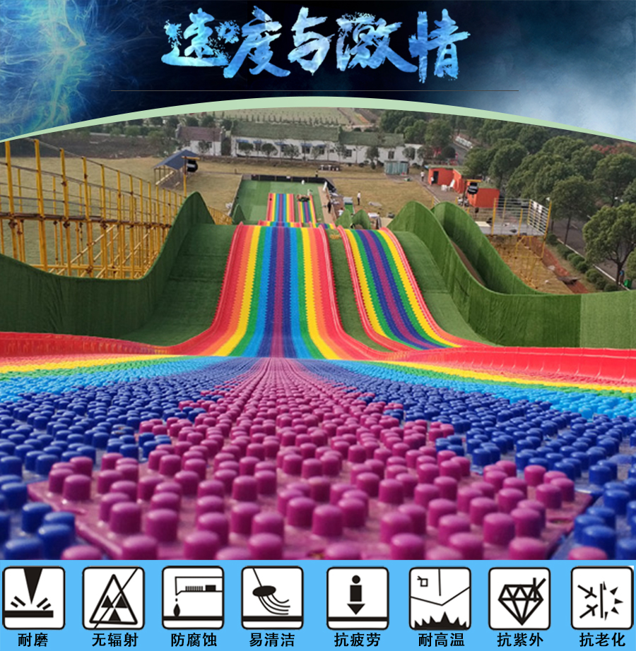 滑梯寬度建議2.5/3.5米寬,長度可根據需求定制,大面積鋪裝時,施工十分快捷簡便。滑雪板的壽命可以達到5年以上,并具有優異的耐磨、韌性、抗壓、復彈、耐候、防火、透水等性能和良好的滑度。